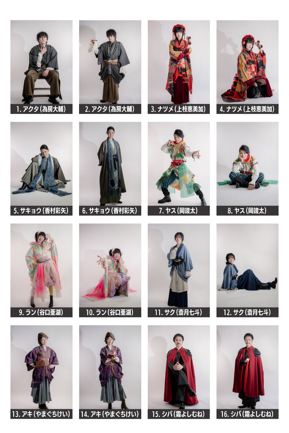 各キャスト2種類ずつありますので、写真の番号をご確認ください!